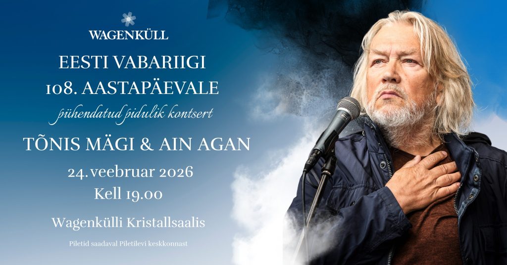 24.veebruari õhtul, mil Eesti tähistab oma 108. sünnipäeva kõlab Wagenkülli Kristallsaalis muusika, mis on kasvanud koos meie rahva loo ja hingega. See on õhtu, kus aeg justkui peatub – et kuulata, meenutada ja tunda. Lavale astuvad Tõnis Mägi ja Ain Agan, kaks Eesti muusikat kujundanud loojat, kelle looming kõlab põlvest põlve. Laulud sünnivad hääle, kitarri ja klaveri kooskõlas, need on helid, mis räägivad vabadusest, armastusest ja kodust – Eestist.