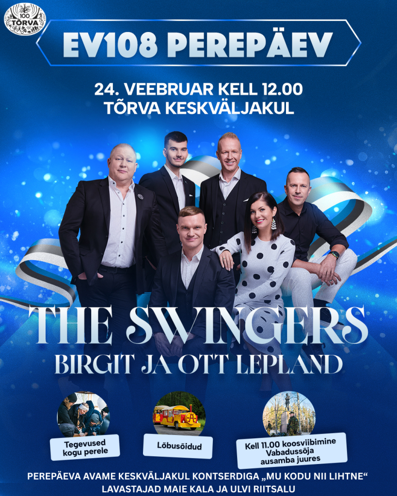 Kell 12.00 EV108 perepäeva avamine Tõrva keskväljakul kontserdiga „Mu kodu nii lihtne“, lavastajad Maie Kala ja Ulvi Riitsalu