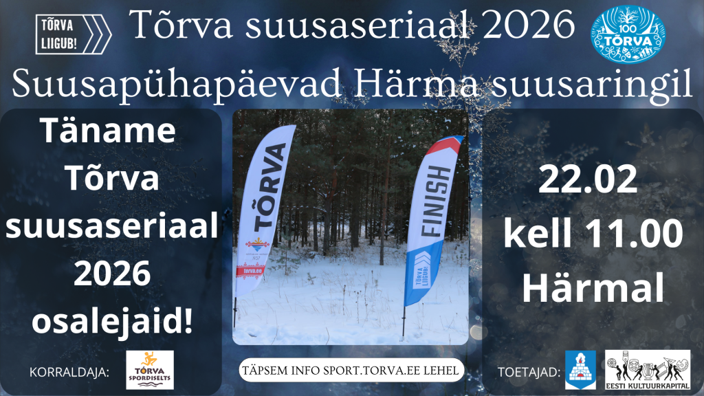 22. veebruaril kell 11.00 täname Härmal Tõrva suusaseriaal 2026 osalejaid. Kell 12.00 alustame Härma suusamaratoniga.