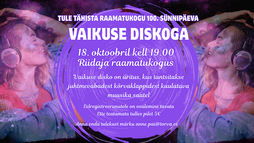 Tule tähista Riidaja raamatukogu 100. sünnipäeva 18. oktoobril kell 19.00 vaikuse diskoga.