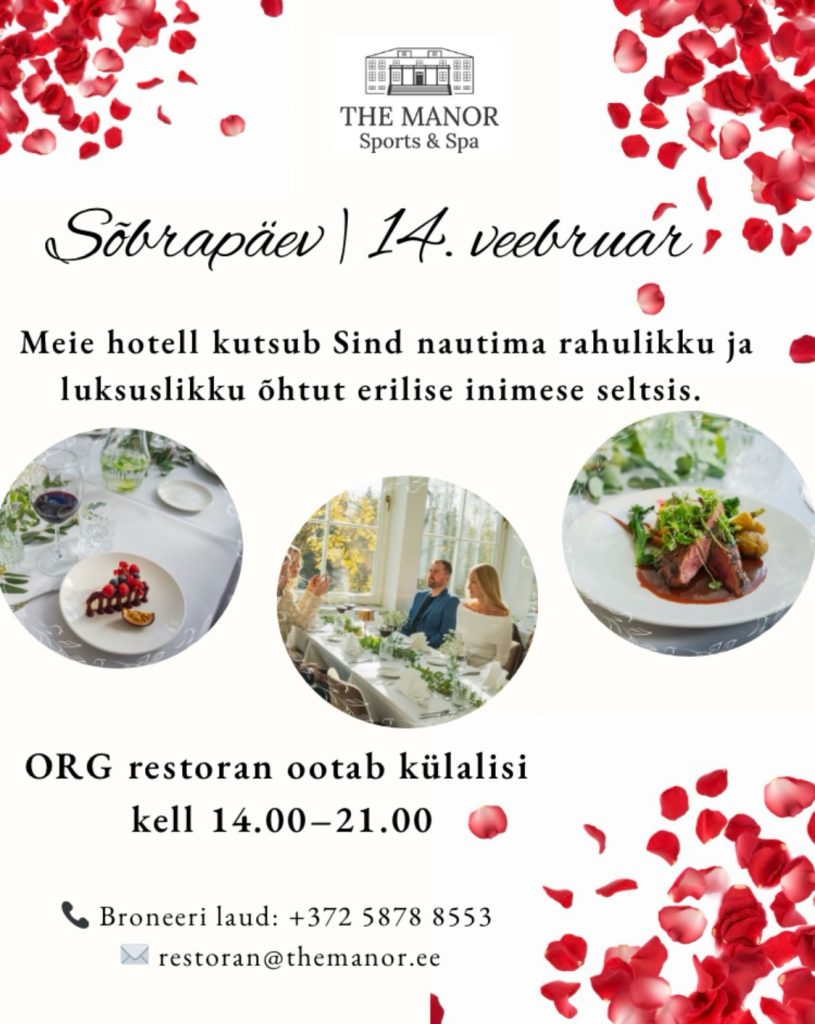 Sõbrapäev on peagi ukse ees ning sel puhul avab The MANOR Sports & Spa oma külalistele taas uksed! ORG restoran ootab külalisi 14.00-21.00.
