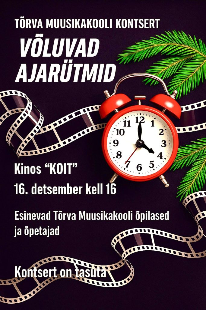 Jõulud lähenevad ja ajarütmid saavad maagilise sära! 16. detsembril kõlab kinos Koit muusika, mis viib kuulaja justkui jõulufilmi — sulnid helid, magusad meloodiad ja õrnad rütmid, mida esitavad Tõrva Muusikakooli õpilased ja õpetajad.
